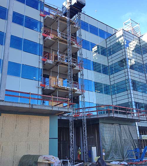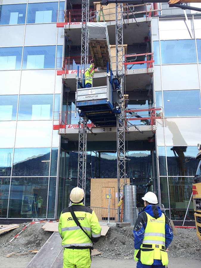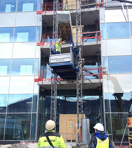 Byggeplassheiser frakter personell og materiell sikkert opp, og sparer prosjektet ditt for tid og ressurser. Vi kan bl.a. levere personheiser med kapasitet opptil 1500 kg.