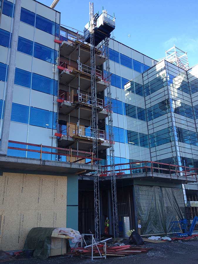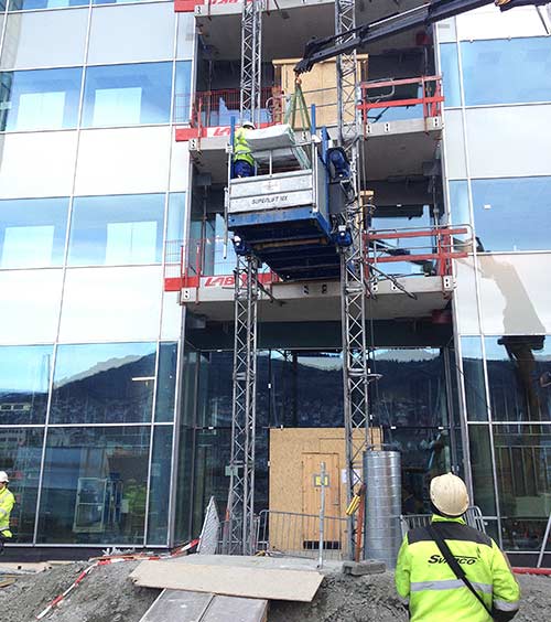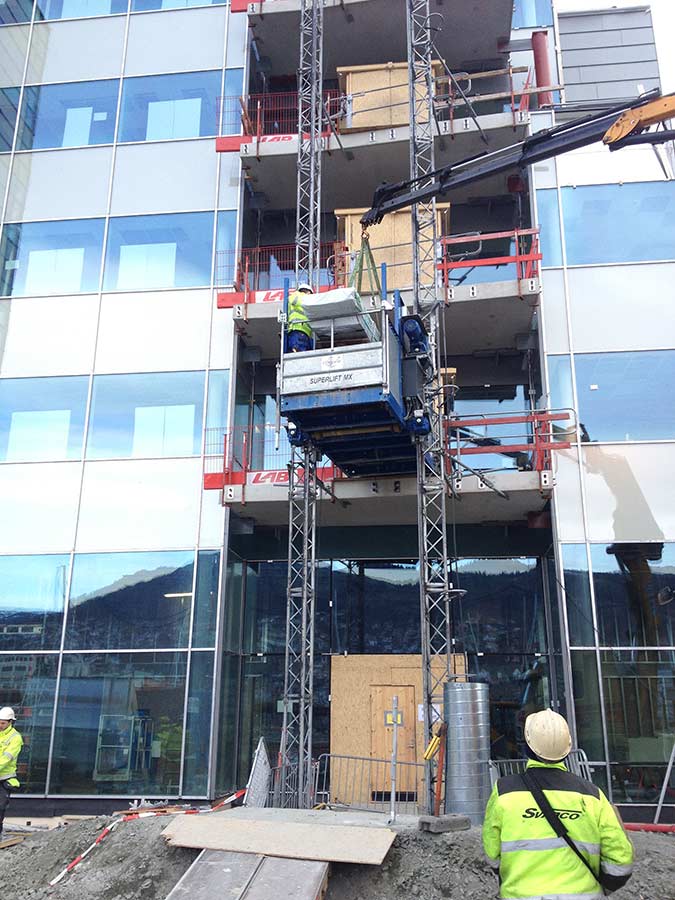 Byggeplassheiser frakter personell og materiell sikkert opp, og sparer prosjektet ditt for tid og ressurser. Vi kan bl.a. levere personheiser med kapasitet opptil 1500 kg.